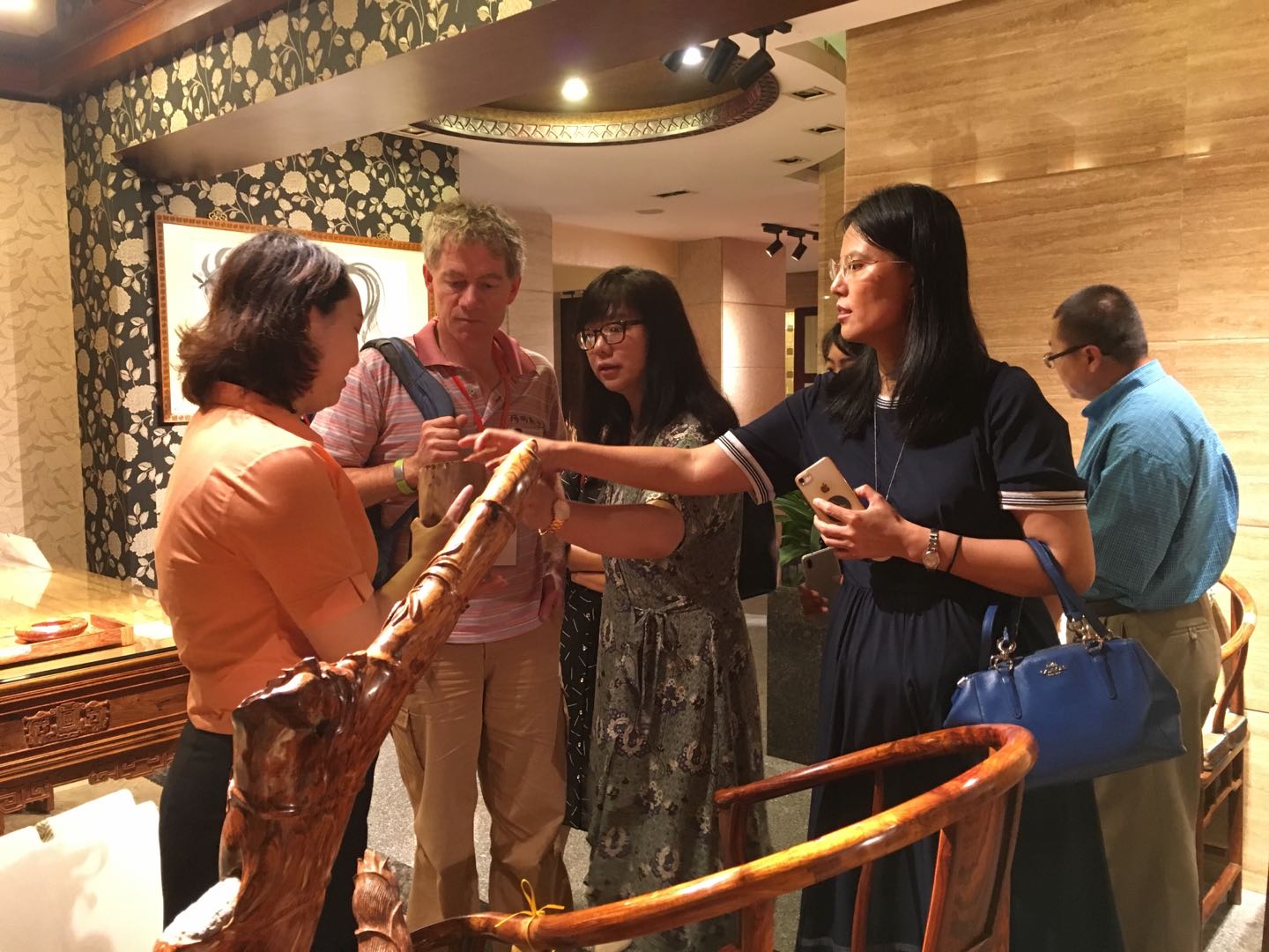 2019年6月4日,来自美国的三位博士,漂洋过海、不远万里来到中国,相约于中山红古轩红木家具,为开启一场美妙的中国家具之旅。现场,博士们频频被红木家具所惊艳,迷上了红木家具。