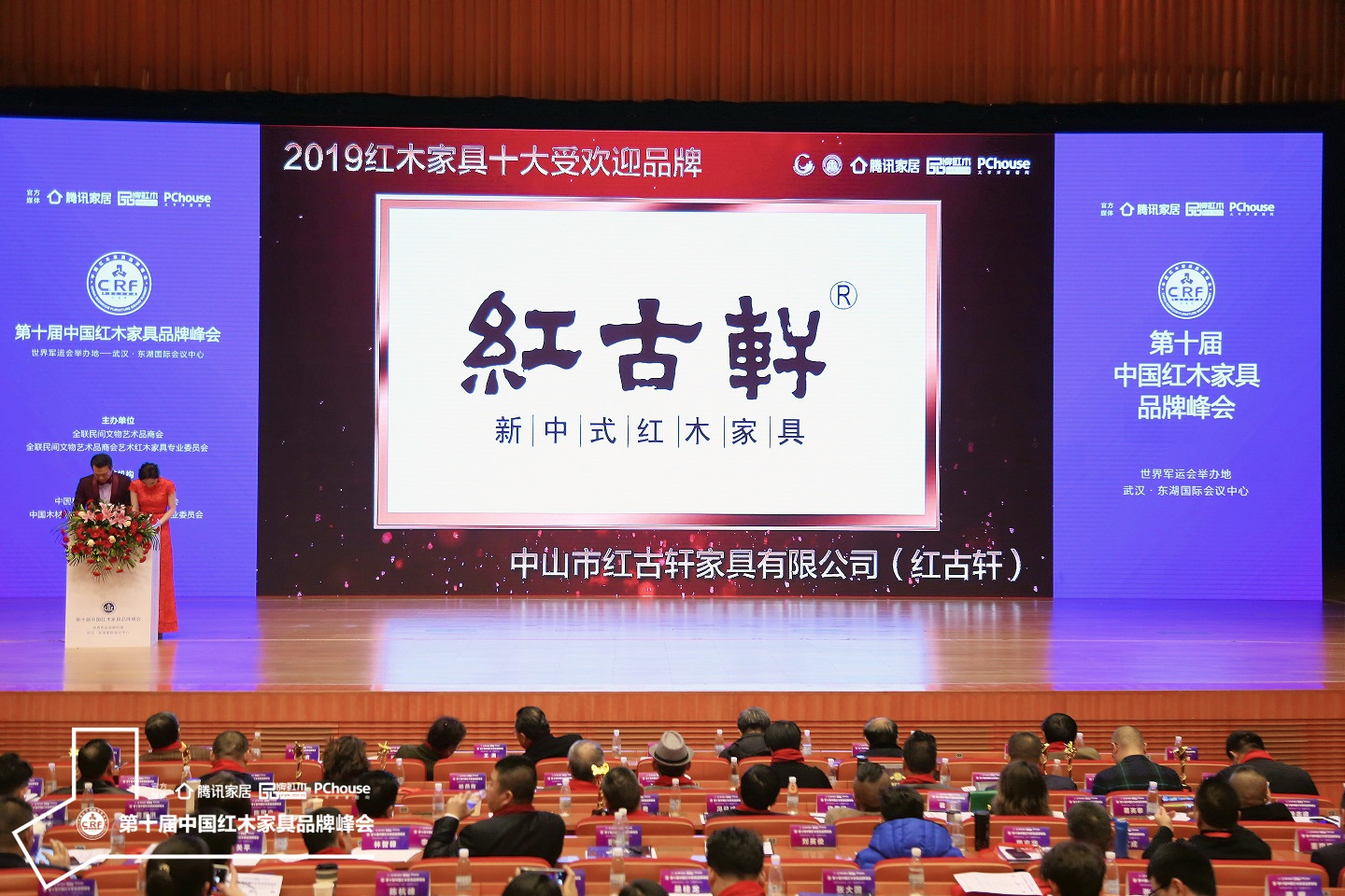 全国几大红木产区的行业精英聚首世界军运会举办地——武汉东湖国际会议中心,聚焦第十届中国红木家具品牌峰会。马未都亲临现场讲述《红木家具的前世今生》。同期,新一届红木家具十大品牌诞生,红古轩成焦点,连续十年斩获中国红木家具十大受欢迎品牌,品牌价值再创新高。