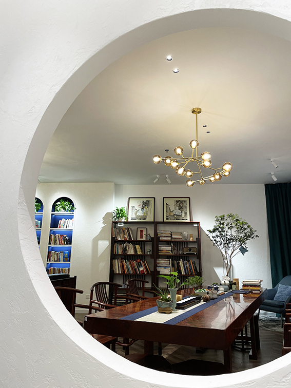 喜欢喝茶,可以时常约朋友到家里,一张大桌子也能秒变超级餐桌、茶台,如果再配合开放式厨房,聚会的氛围也会更加温馨。